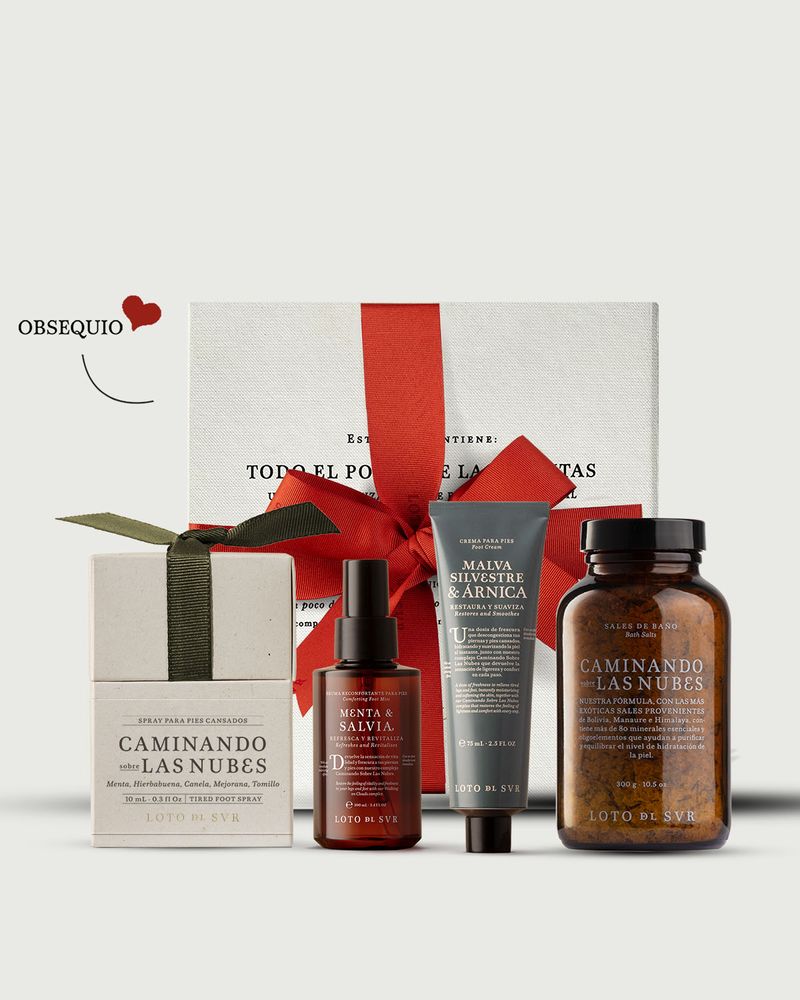 Hemos ideado el mejor ritual para cuidar y consentir los pies más cansados. Este ritual te devolverá la energía y te recargará tus pies, dejándolos suaves, desinflamados y con una sensación de frescura. Te aseguramos que después de este ritual sentirás que “Caminas sobre las Nubes. Contiene: Sales Caminando Sobre Las Nubes 300 gr Spray Pies Cansados 100ml Crema Caminando Sobre Las Nubes 75 gr PEQUEÑOS PLACERES PIES CANSADOS 11 ML Caja Icónica L Obsequio *Exclusivo Web